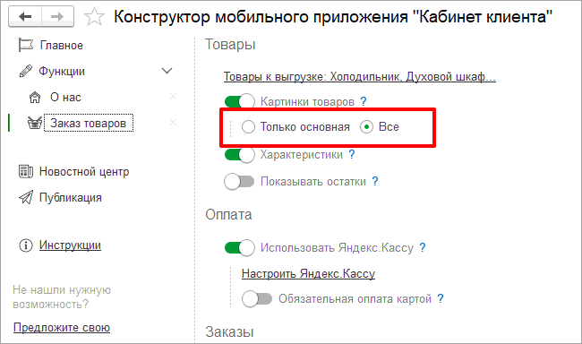 С помощью конструктора сборки мобильного приложения любой пользователь «1С:УНФ» теперь сможет организовать онлайн-торговлю своих товаров и услуг. В конструкторе доступны настройки всех функций, которые необходимы для поддержки онлайн-продаж.